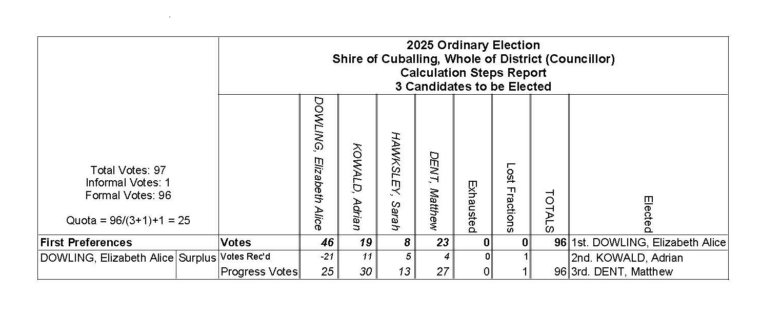 Calculation Steps Report for the Shire of Cuballing Council Election 2025